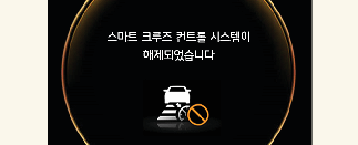 스마트 크루즈 컨트롤이 자동으로 일시 해제되면 경고문과 경고음을 통해 자동 일시 해제를 알립니다.