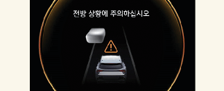 전방 상황 주의 알림이 발생하면 새롭게 나타난 전방의 차량이나 물체와 충돌할 수 있습니다. 전방 도로 상황 및 주행 상태를 확인하고 필요하면 브레이크 페달을 밟아 직접 속도를 조절하십시오.