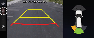 「R」(후진)단에서「N」(중립)단 또는「D」(주행)단으로 변속 시 차량 후방 영상을 모니터로 지속 표시하여 주차를 보다 안전하게 할 수 있도록 도와주는 기능입니다.