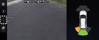 」을 터치하면 차량을 위에서 내려다 보는 영상을 화면에 표시하고, 주차할 때 후방 차량과의 거리를 보여줍니다.