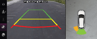 서라운드 뷰 모니터의 주차 보조 뷰 기능은 여러 가지 뷰 모드로 주차 상황에서 운전자가 차량 주변을 확인하는 것을 도와주는 기능입니다.