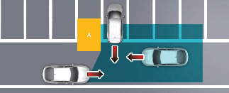 사선으로 주차된 상태에서 후진으로 출차할 경우 후측방에서 접근하는 차량을 인식하지 못해 후방 교차 충돌방지 보조가 경고하지 않거나 제동을 도와주지 않을 수 있습니다.