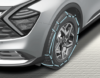 체인 규격이 맞지 않거나 규격대로 장착하지 않은 경우에는 차량이 훼손될 수 있으며 이로 인해 조향성 및 안전성에 문제가 생길 수 있으므로 규격에 맞는 체인을 장착하십시오.
