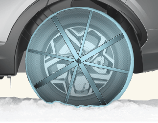 눈길, 빙판길을 주행할 때는 스노 타이어 또는 규격에 맞는 타이어체인을 장착하시고, 급발진, 급가속, 급제동을 삼가십시오.