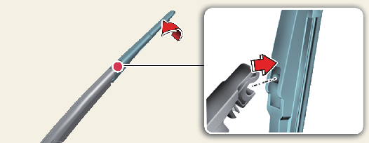 와이퍼 블레이드를 분리할 때 와이퍼 암을 뒤쪽으로 과도하게 힘을 주어 당기면 연결 부위가 파손될 우려가 있으므로 주의하십시오.