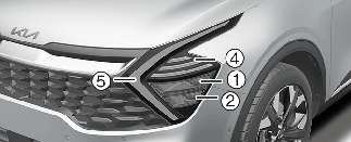 전조등(1,2), 방향지시등(4), 미등/주간주행등/차폭등(5)이 켜지지 않을 경우에는 가까운 자사 직영 서비스센터 또는 서비스협력사에 의뢰하십시오.