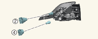 제동등(2), 방향지시등(4)의 소켓을 시계 반대 방향으로 돌려 분리하십시오.