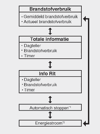 Als het bestuurdersportier wordt geopend na het uitschakelen van de motor of er 3 minuten verstreken is na het opnieuw starten van de motor, wordt de rij-informatie op nul gezet.