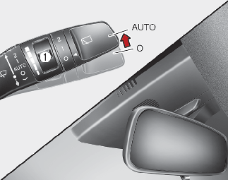 Zet de schakelaar tijdens het wassen van de auto in stand (O) om te voorkomen dat de ruitenwissers automatisch worden ingeschakeld.