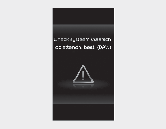 Als het Driver Attention Warning-systeem niet naar behoren werkt, verschijnt de waarschuwingsmelding 'Check Driver Attention Warning (DAW) system' ('Controleer waarschuwingssysteem voor de aandacht van de bestuurder') op het instrumentenpaneel. In dat geval raden wij u aan uw auto te laten controleren door een officiële Kia-dealer/servicepartner.