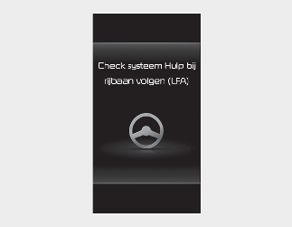 Als Lane Keeping Assist niet naar behoren werkt, verschijnt de waarschuwingsmelding 'Check Lane Following Assist (LFA) system’ ('Controleer systeem hulp bij rijbaan volgen (LFA)') op het instrumentenpaneel. Laat het systeem in dat geval nakijken door een professionele werkplaats. Kia raadt aan om een officiële Kia-dealer/servicepartner te bezoeken.