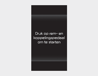 Trap het koppelingspedaal volledig in en zet de versnellingspook in de vrijstand. Houd het koppelingspedaal en het rempedaal ingetrapt terwijl u de toets ENGINE START/STOP (motor starten/stoppen) in de stand START drukt. Als de status wordt gewijzigd in ACC, verschijnt het volgende pop-upscherm op het instrumentenpaneel.