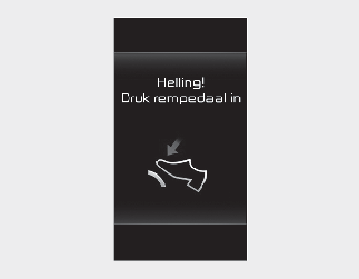 Deze waarschuwingsmelding wordt weergegeven als het voertuig langzaam een helling op rijdt en het voertuig detecteert dat het rempedaal niet wordt gebruikt.