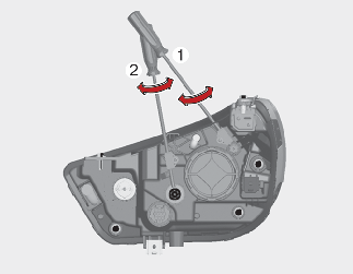 Draai de schroevendraaier (1) rechtsom of linksom om de dim- en grootlichtbundel naar links of rechts te verstellen. Draai de schroevendraaier (2) rechtsom of linksom om de dim- of grootlichtbundel omhoog of omlaag te verstellen.