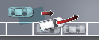 When you are driving forward out of a parking space, if Blind-Spot Collision-Avoidance Assist judges that there is a collision risk with an approaching vehicle in the blind spot, it can help avoid collision by applying the brake.