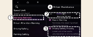 Ensure that Warning methods you have set may apply to the Warning methods of other driver assistance systems.