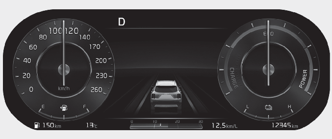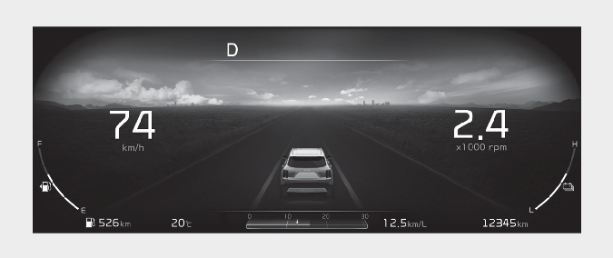 Type A is the basic theme of the full LCD type cluster and provides different graphic styles depending on drive mode.