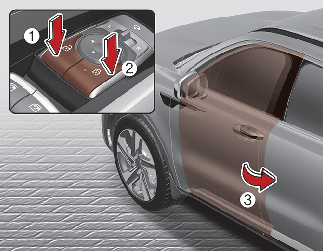 If you lock the door with the central door lock button (2), all vehicle doors will lock automatically.
