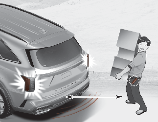 If you are positioned in the detecting area (50~100 cm [20~40 in] behind the vehicle) carrying a smart key, the hazard warning lights will blink and chime will sound to alert you the smart key has been detected and the liftgate will open.