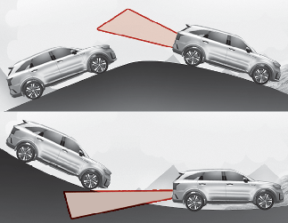 Blind-Spot Collision-Avoidance Assist may not operate properly when driving on a slope. The function may not detect the vehicle in the next lane or may incorrectly detect the ground or structure.