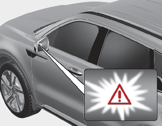 To warn the driver of an approaching vehicle from the rear left/right side of your vehicle, the warning light on the side view mirror will blink and a warning message will appear on the cluster. At the same time, an audible warning will sound and the steering wheel will vibrate. If the Rear View Monitor is operating, a warning will also appear on the infotainment system screen.