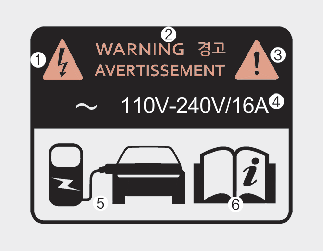 After opening the charging door, check the charging symbol at the bottom of the warning label.