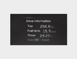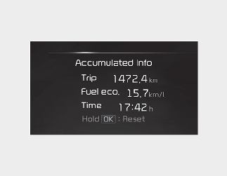 ถ้าคุณกดปุ่ม "OK" เกิน 1 วินาที หลังจากข้อมูลการขับขี่ถูกแสดงขึ้น ข้อมูลจะถูกรีเซต