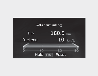 ถ้าคุณกดปุ่ม "OK" เกิน 1 วินาที หลังจากข้อความข้อมูลตั้งแต่เติมน้ำมันถูกแสดงขึ้น ข้อมูลจะถูกรีเซต