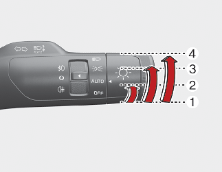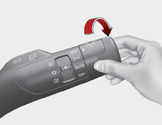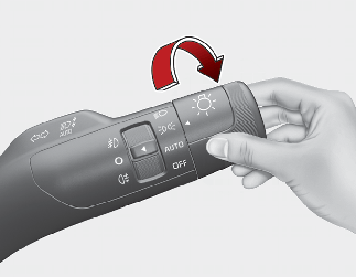เพื่อเปิดการทำงานของไฟส่องสว่าง ให้หมุนที่บิดตรงส่วนปลายก้านบังคับไปที่ตำแหน่งต่างๆ ต่อไปนี้