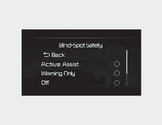 เมื่อเครื่องยนต์ติดอยู่ ให้เลือก 'ความช่วยเหลือสำหรับผู้ขับขี่ → ระดับเสียงเตือน' จากเมนูการตั้งค่าเพื่อเปลี่ยนระดับเสียงเตือนสำหรับระบบช่วยเหลือป้องกันการชนจากมุมอับสายตา