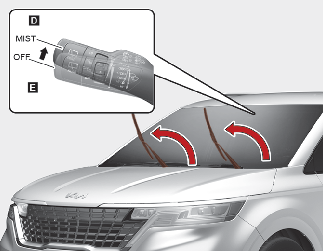 หลังจากดับเครื่องยนต์ ให้บิดสวิตช์ที่ปัดน้ำฝนไปยังตำแหน่งการปัดแบบครั้งเดียว (MIST) ภายใน 20 วินาที และให้บิดค้างไว้นานกว่า 2 วินาทีจนกว่าใบปัดน้ำฝนอยู่ในตำแหน่งที่ตั้งตรง