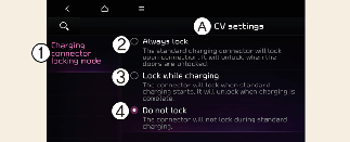 Valige infomeelelahutuskuval EV → sätete ikoon → Laadimispistiku lukustusežiim.