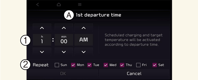 選擇星期幾以啟動定時充電和出行時間的目標溫度。