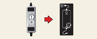 按住控制盒背面的按鈕 (1) 2 至 8 秒鐘,以調節充電量。(請參閱充電電纜類型和設置充電量的範例。)