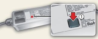當充電器插入電源插座但未插入車輛時,只要按下按鈕 (1) 少於 1 秒,便會改變充電電流。 控制盒