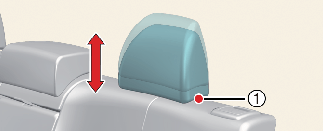 按住釋放按鈕 (1) 即可使頭枕下降。