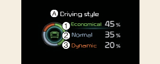 此顯示螢幕顯示駕駛的行駛風格為省電、正常或侵略性。