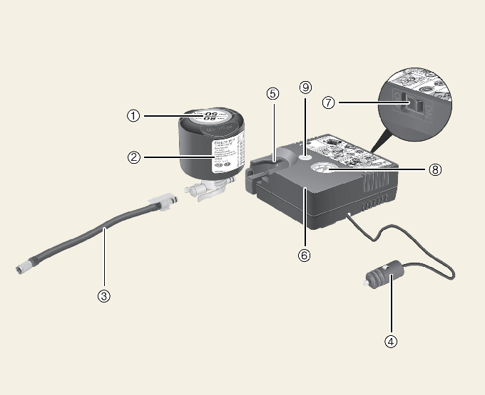 * 請嚴格遵循指定順序,否則補胎劑在高壓下會漏出。