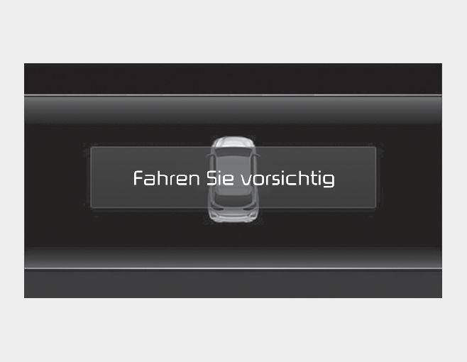 Wenn das Fahrzeug aufgrund einer Notbremsung angehalten wurde, erscheint die Warnmeldung „Vorsichtig fahren“ auf dem Kombiinstrument.