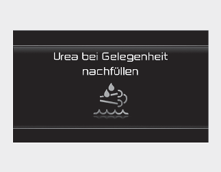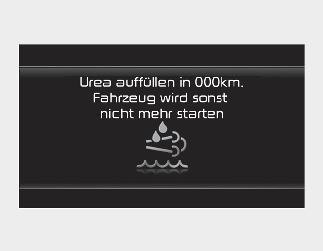 sich einem zu niedrigen Füllstand nähert, erscheint die Warnmeldung „Urea auffüllen in 000 km oder Fahrzeug wird sonst nicht