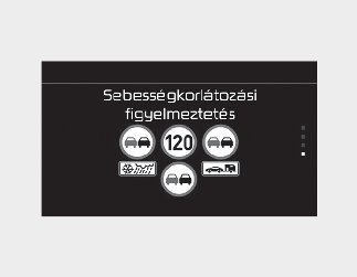Az intelligens sebességkorlátozási figyelmeztetés megjeleníti a sebességkorlátozásra és az előzési korlátozásokra vonatkozó adatokat, ha a jármű ilyen közúti jelzőtábla mellett halad el.