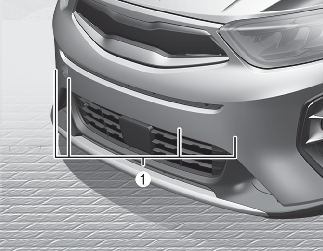 The sensing range and objects detectable by the ultrasonic sensors (1) limited. Whenever moving pay as much attention to what is in front and behind of you as you would in a vehicle without Forward/Reverse Parking Distance Warning.
