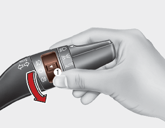 To turn the rear fog lights on, turn the rear fog light switch (1) to the on position when the headlight is turned on.