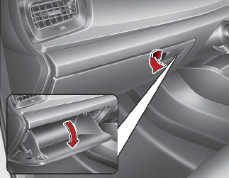 To open the glove box, pull the handle and the glove box will automatically open. Close the glove box after use.
