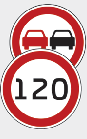 The cluster displays the speed limit information, overtaking restriction and conditional road sign.