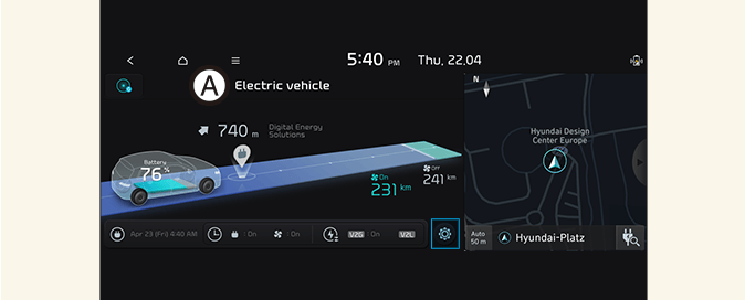 Vælg ikonet på skærmen. Du kan indstille opladningsgrænsen, opladningsstrømmen, batterikonditioneringstilstanden og funktionerne i kørselstilstand.
