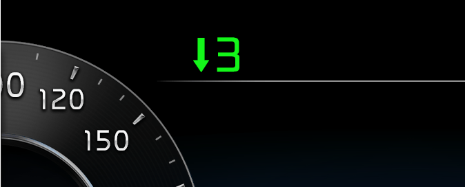 ▼3: Indicates that shifting down to the 3rd gear is desired (currently the shift lever is in the 4th, 5th or 6th gear).