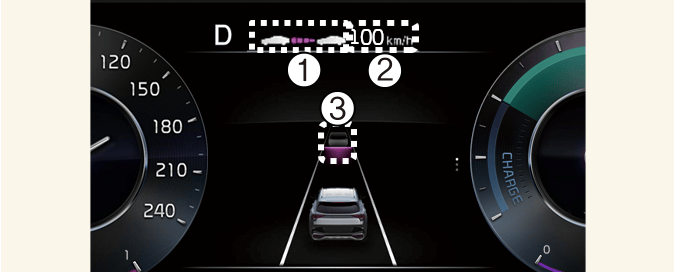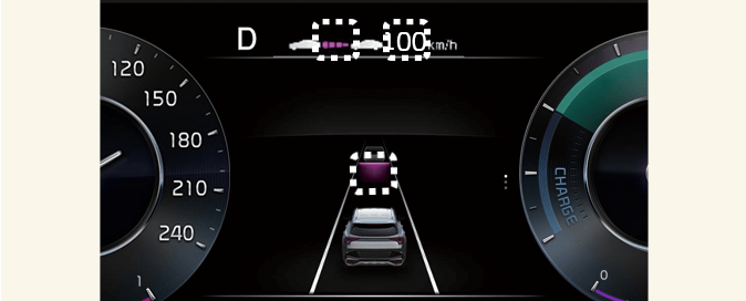 The distance of the front vehicle on the cluster is displayed according to the actual distance between your vehicle and the vehicle ahead.