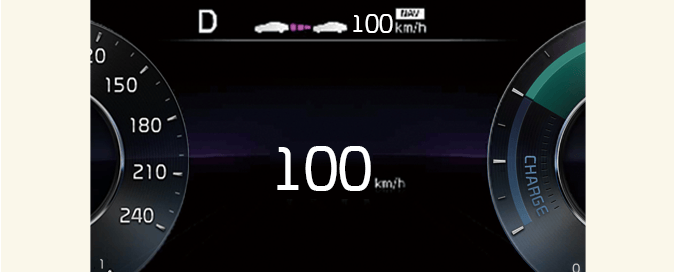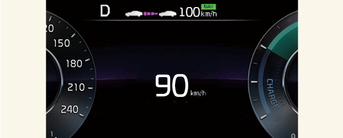 When Navigation-based Smart Cruise Control operates, it will be displayed on the cluster as follows: