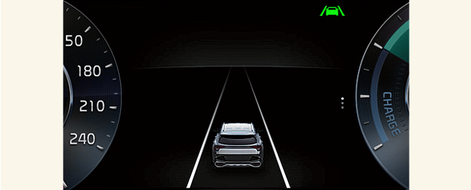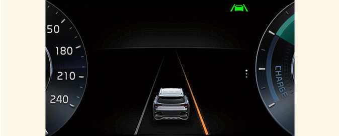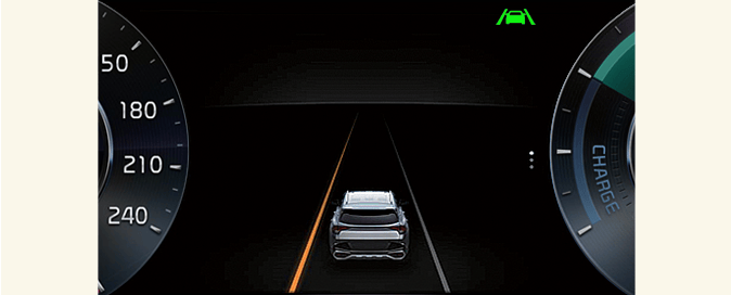 When lane markings (or road edges) are detected, the lane lines on the cluster will change from gray to white and the green (
